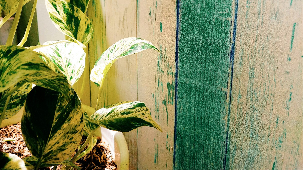 - 흰 벽, 나무 책상, 린넨 천 등 식물이 주인공이 되는 배경